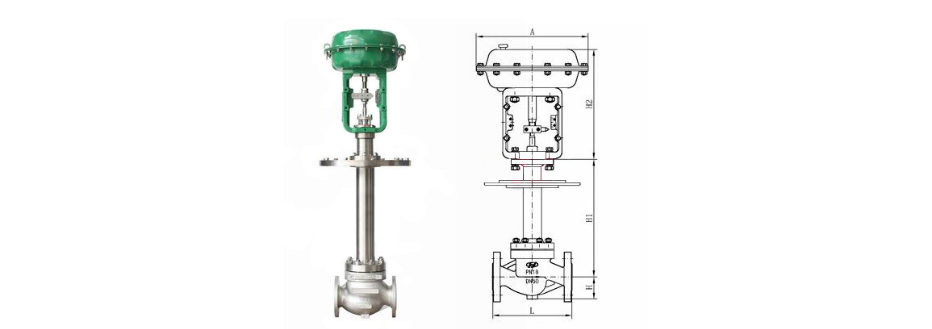 氣動薄膜低溫調(diào)節(jié)閥適用于介質(zhì)溫度-40℃~ -196℃(如液氧、液氮等)的低溫、深冷場合,主要由多彈簧氣動薄膜執(zhí)行器與帶長頸接管的閥體組成,采用長頸型上閥蓋的作用,使填料處于常溫下工作,并減少外界熱能傳入,為減少傳遞,長頸一般采用薄壁結(jié)構(gòu),具有良好的耐低溫性,特別用于精確控低溫氣體、流體(如液氧、液氬等)的工藝參數(shù)保持在給定值。