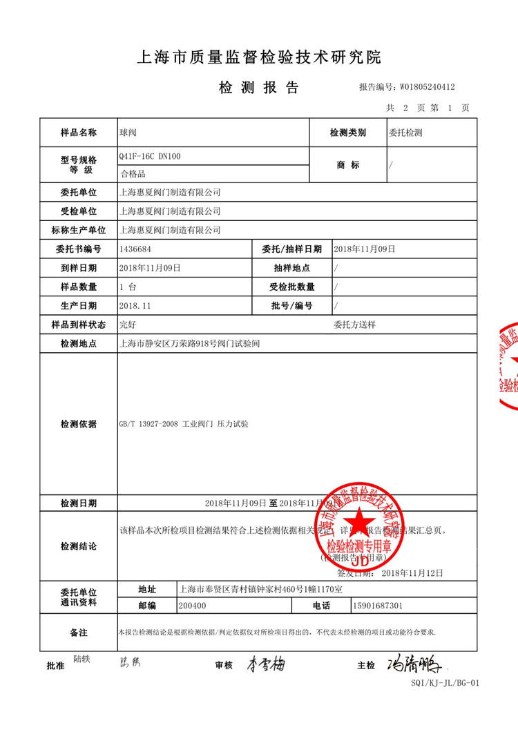 Q41F電動法蘭球閥閥體檢測報(bào)告: