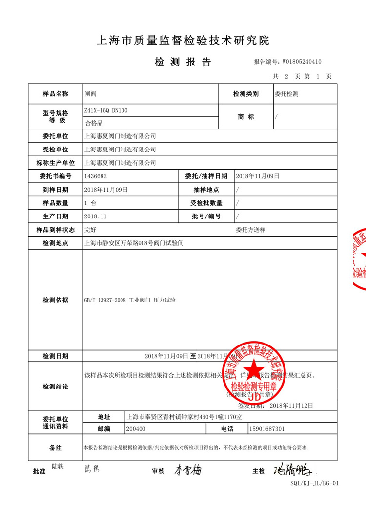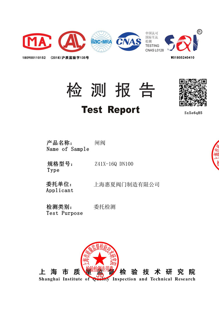 Z41X明桿彈性座封閘閥檢驗(yàn)報(bào)告: