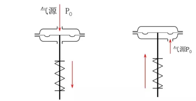 氣動薄膜式執(zhí)行機構(gòu)有正作用和反作用。