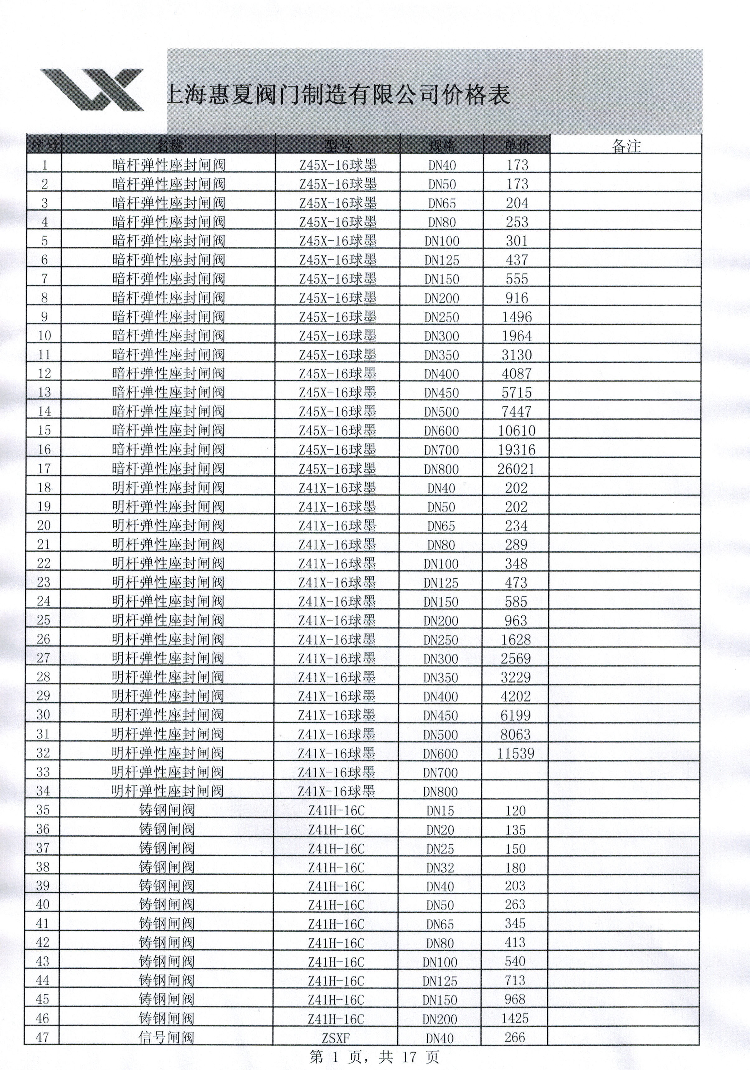 2016/5/2-上海惠夏閥門價(jià)格表閥門廠家