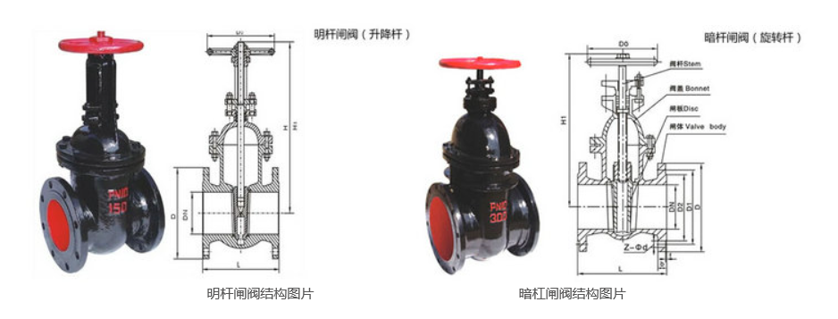 2、明桿閘閥是通過閥桿與方向盤的螺紋傳動來提升或者降下閥瓣;暗桿閘閥在開關時方向盤與閥桿是連接在一起相對不動的,它是通過閥桿在固定點轉(zhuǎn)動來帶動閥瓣向上提升和向下來完成啟閉的;