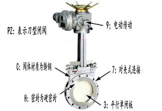 驅(qū)動方式表示:手動無代號(根據(jù)規(guī)定通常省略)、2電液動、3渦輪蝸桿、5-錐齒輪傳動、6氣動、9-電動;
