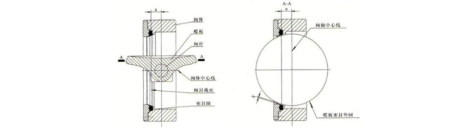閥板回轉(zhuǎn)中心(即閥門軸中心)于閥板密封截面形成一個(gè)尺寸A偏置,并與閥體中心形成一個(gè)尺寸B偏置。