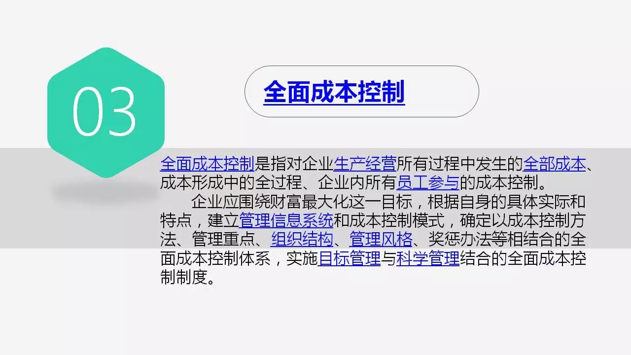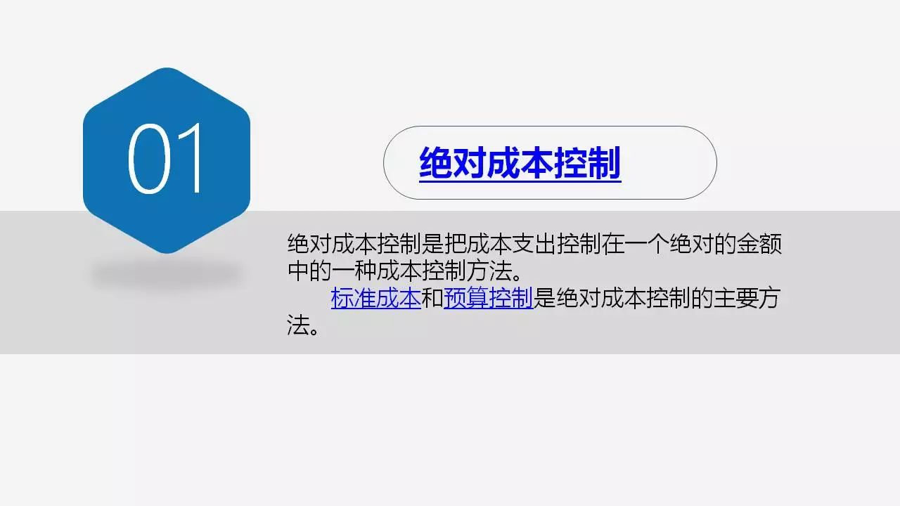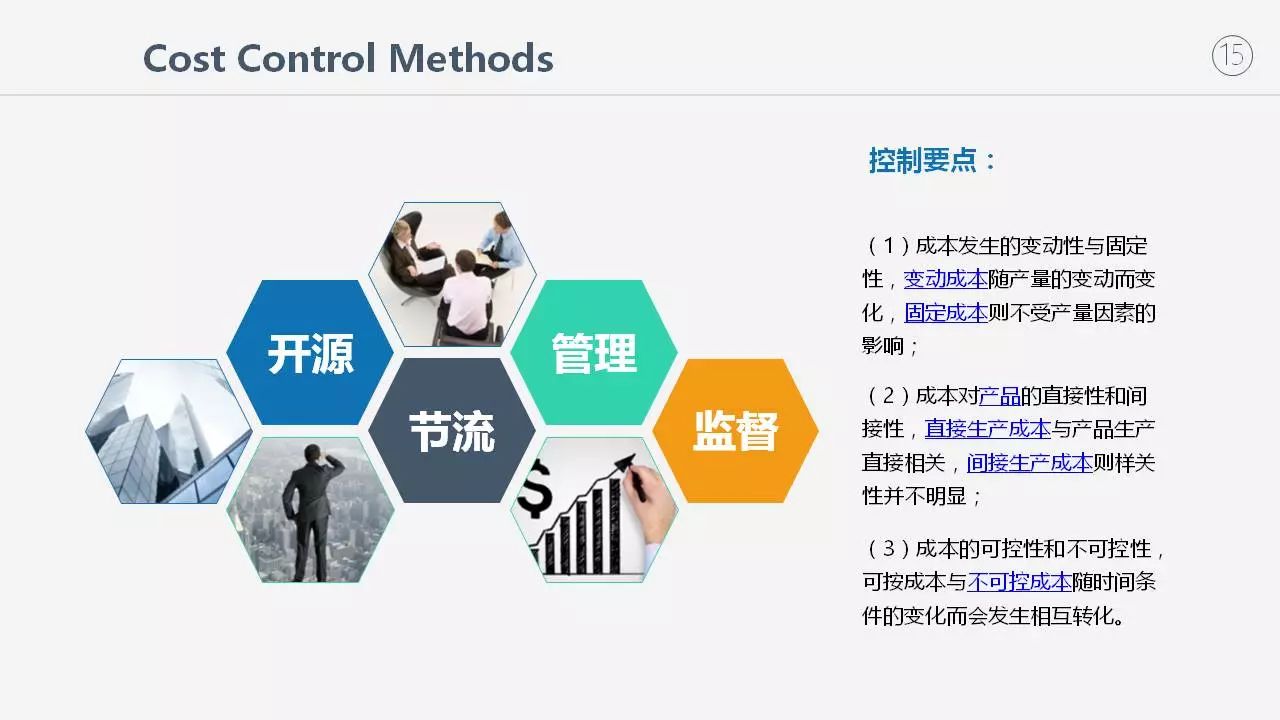成本控制方法是指完成成本控制任務(wù)和達到成本控制目的的手段。對于成本控制方法,是多種多樣的,不同的階段,不同的問題,所采用的方法就不一樣,。即使同一個階段,對于不同的控制對象,或出于不同的管理要求,其控制方法也不盡相同。