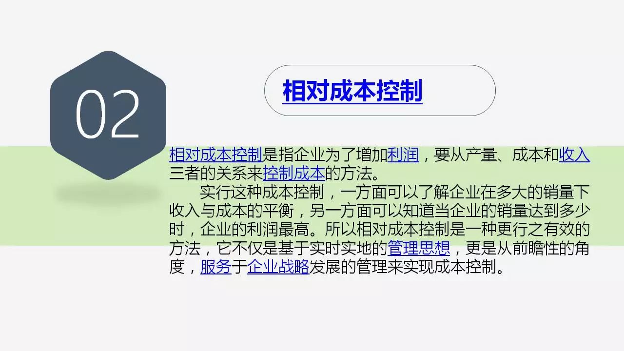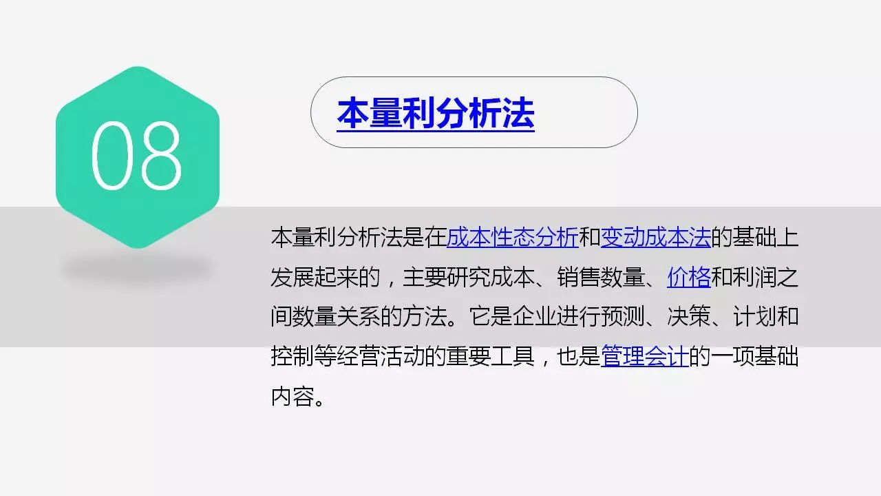 比如:僅就事前控制來說,就有用于產(chǎn)量或銷售量問題的本量利分析法;有用于產(chǎn)品設(shè)計和產(chǎn)品改進的價值分析法;有解決產(chǎn)品結(jié)構(gòu)問題的線性規(guī)劃法;有用于材料采購控制的最佳批量法。